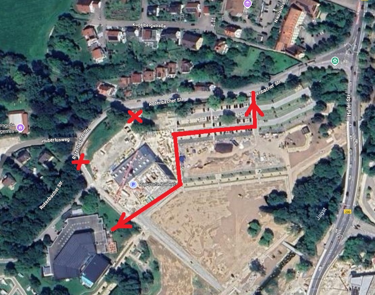 Aufgrund des Baustellenbetriebs im Umfeld des Ellwanger Wellenbads sind die Zufahrten von der Rotenbacher